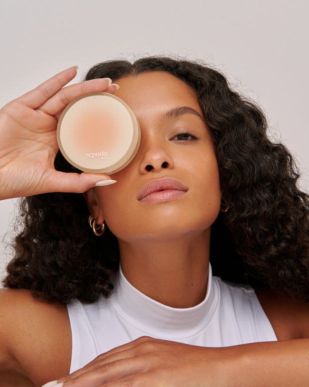3. Tap the applicator over your skin, starting from the center and blending outward for a seamless finish.